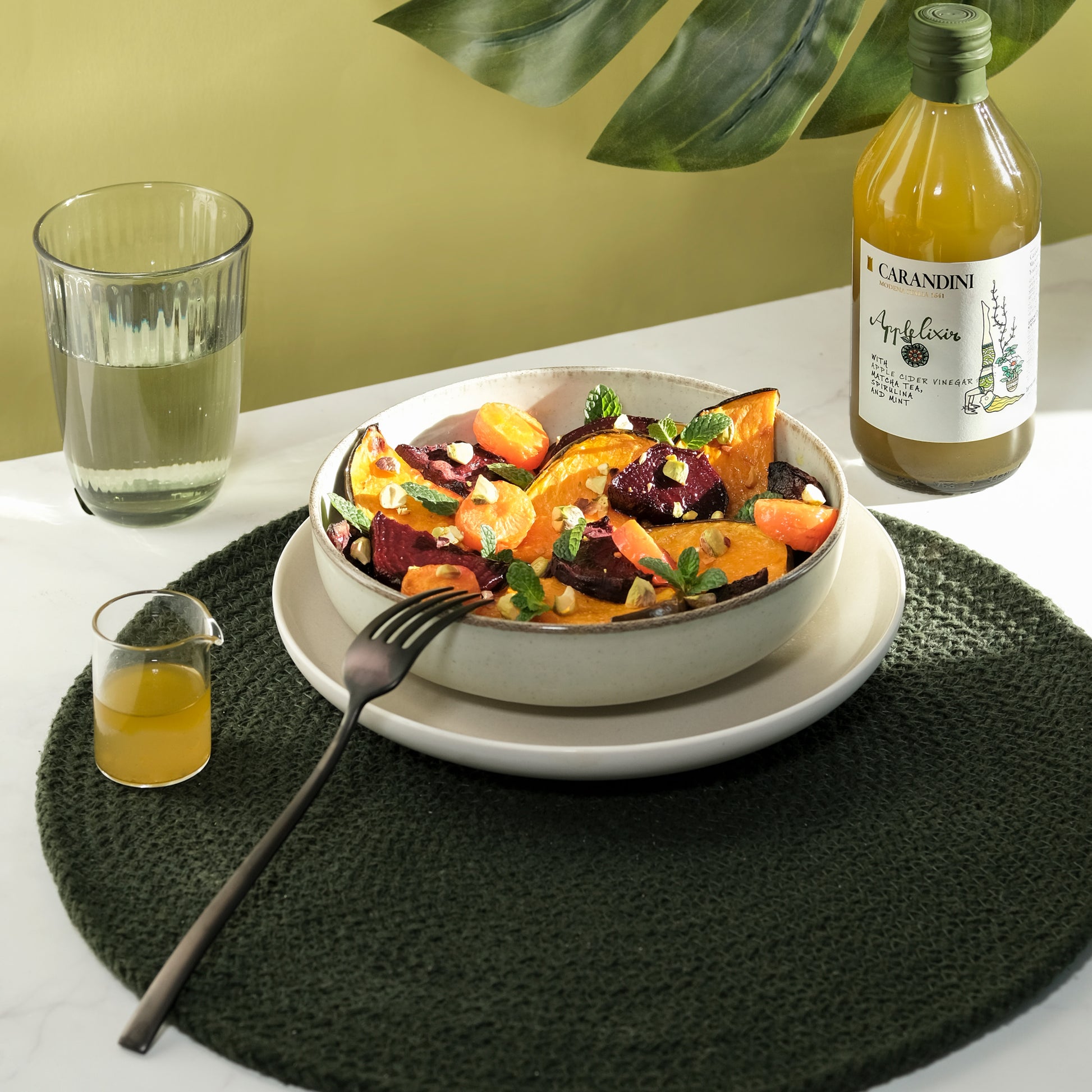 Applelixir with Apple Cider Vinegar, Matcha Tea, Spirulina and Mint has an intense taste and leave a fresh note of mint.